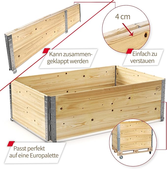 Schroth Home Hochbeet 120x80x40cm groß – rechteckig – Palettenrahmen aus Holz – Hochbeet für Garten – faltbar – steckbar & stapelbar – Aussenbereich (1x Hochbeetrahmen 120x80x40)
