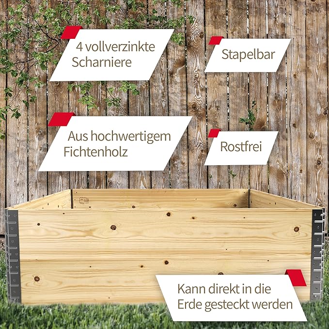 • 100 % ECHTHOLZ – Für die Produktion unserer Hochbeete verwenden wir ausschließlich qualitativ hochwertiges unbehandeltes Fichtenholz