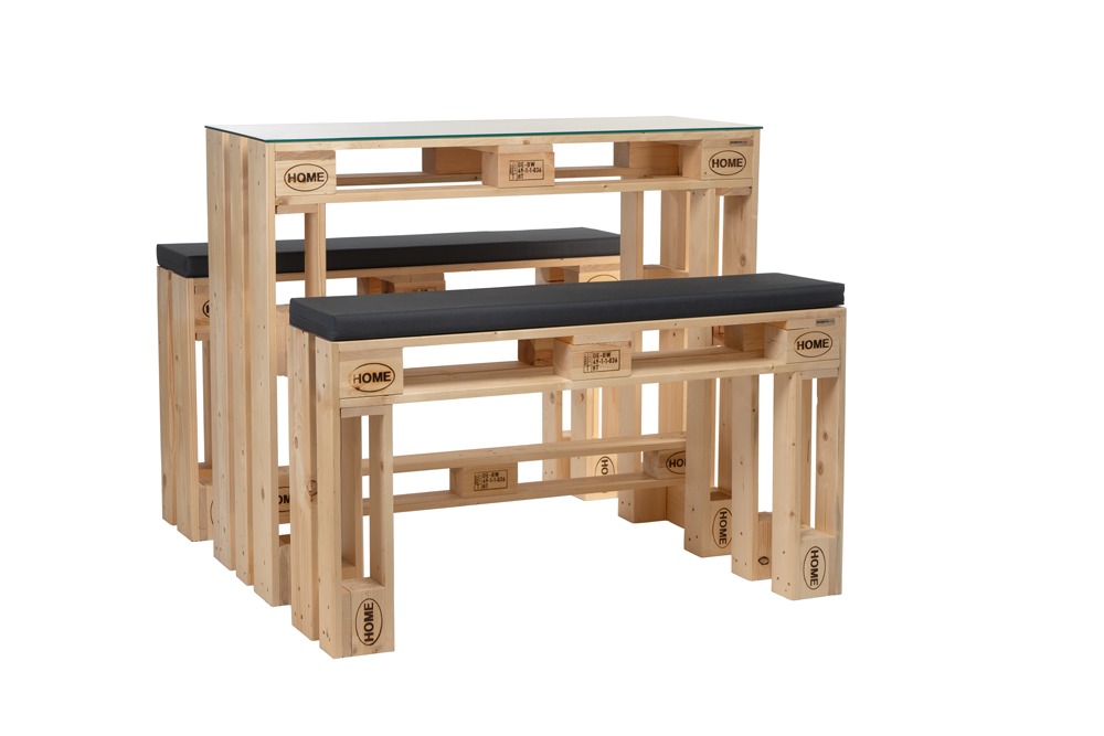 Ergänzen Sie ihre neue Palettenmöbel Bierzelt Garnitur mit einer passenden Glas- oder Granitplatte und Sitzkissen in verschiedenen Varianten und Farben.